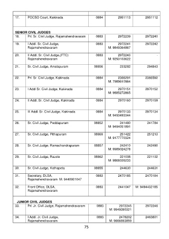 18. Prl. Sr. Civil Judge, Rajamahendravaram 0883 2972239 2972240