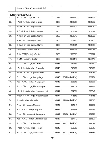 32. Prl. Jr. Civil Judge, Guntur 0863 2234540 2358239