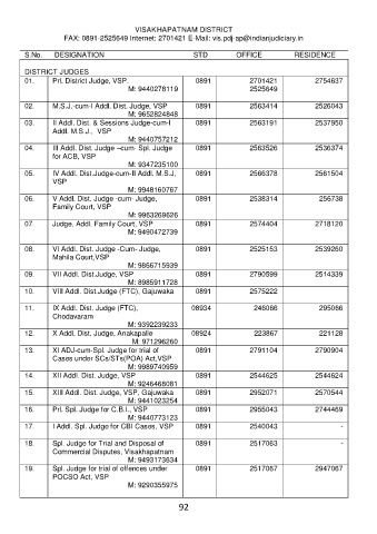 15. XIII Addl. Dist. Judge, VSP, Gajuwaka 0891 2952071 2570544